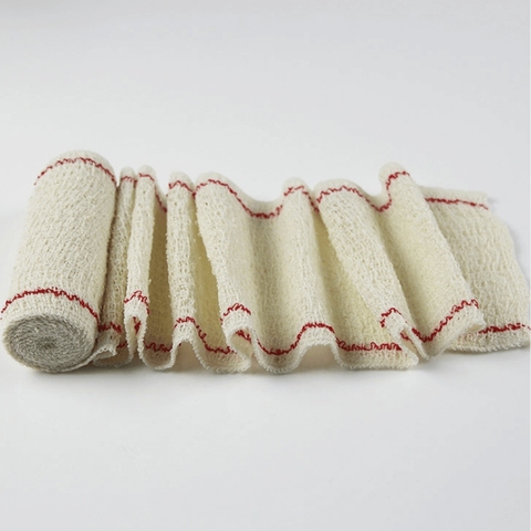 चिकित्सा घाव ड्रेसिंग लाल रेखा लोचदार क्रीप पट्टी प्राकृतिक रंग क्रीप पट्टी